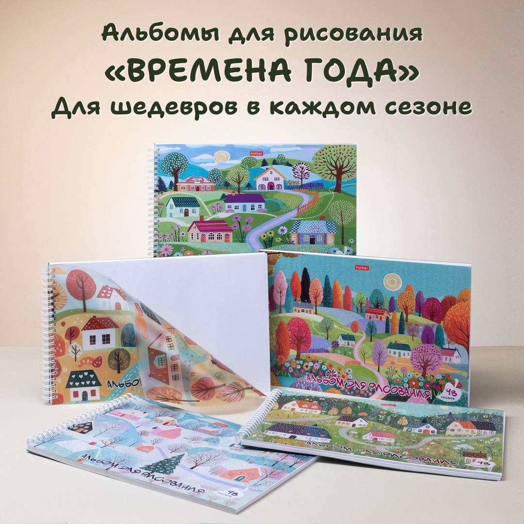 Hatber представляет альбомы для рисования «Времена года» на гребне — альбомы, в которых живёт гармония природы, мерный ход времени и красота каждого из четырёх сезонов.