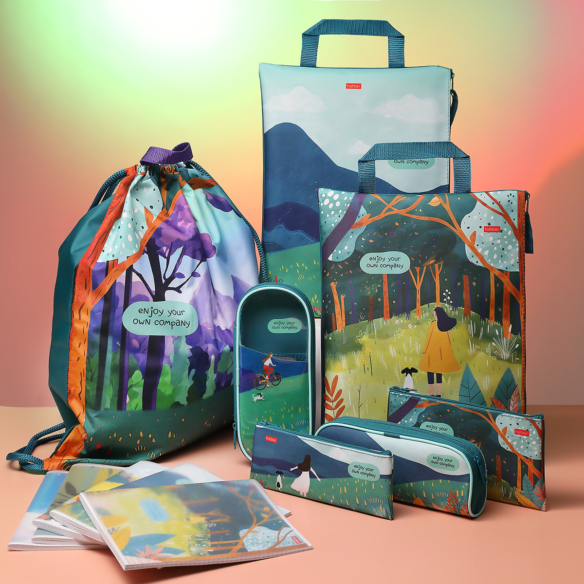 Основная мысль дизайна всей коллекции — гармоничные, умиротворённые пейзажи. Спокойные, но насыщенные цвета складываются в позитивную богатую палитру. Плавные линии исключают всякую суету. У каждого дизайна доброе, одухотворенное, задумчивое настроение. Летние и зимние прогулки на природе, уютные посиделки за чашкой кофе в любимой кофейне. Минуты размышления и спокойствия, минуты отдыха и перезагрузки — то, что так нужно школьникам в непростой учёбе!