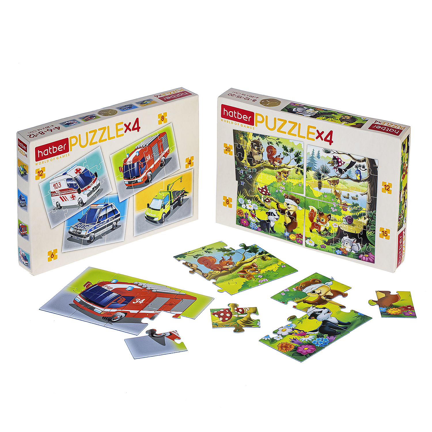 Для тех, кто освоил начальный уровень, предлагаем новую вариацию четырёх картинок без фигурной окантовки, это уже более сложные миксы на 4-6-8-12 и 8-12-15-20 элементов. Две новинки «Служебные авто» и «Лесные жители» подойдут как мальчикам, так и девочкам.