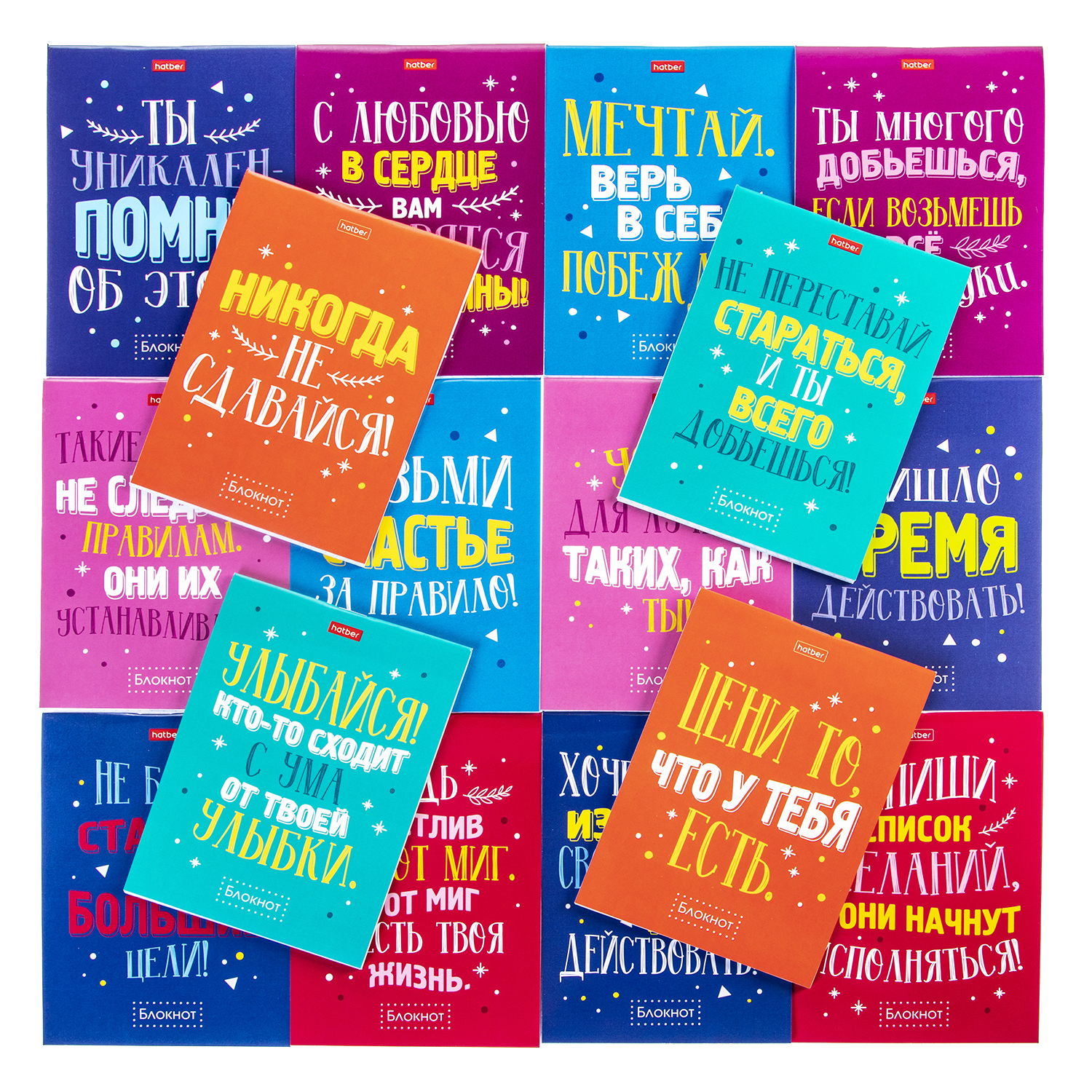 Первая серия «Фразы» на 32 листа представлена в ярких цветах с мотивационными цитатами, которые поднимут настроение и подтолкнут вас к достижению своих целей. С таким блокнотом обязательно у вас всё получится. Собирайте всю серию и заряжайтесь энергией каждый день.