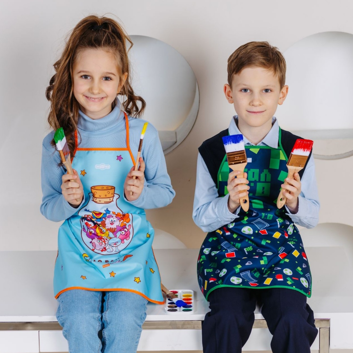 Изготовленные из прочного полиэстера с водонепроницаемой пропиткой, фартуки порадуют глаз яркими цветами, динамичными, позитивными дизайнами и прослужат долго. Они подойдут и для занятий в школе или детском саду, и для домашних и кухонных экспериментов.
