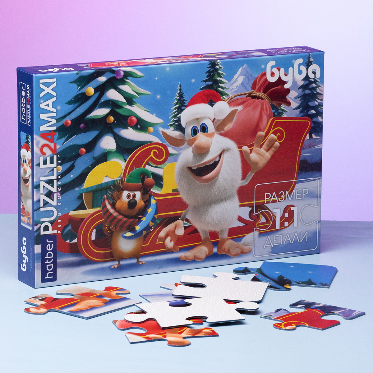 С пазлом «Буба» дети окажутся в праздничной истории, где весёлый домовенок Буба украшает ёлку и готовится к встрече гостей в атмосфере новогоднего настроения!