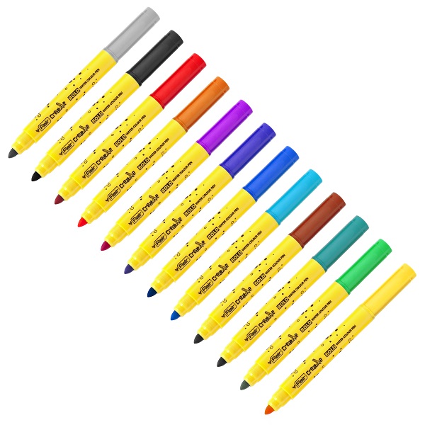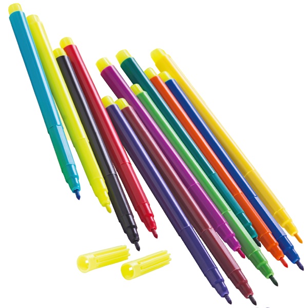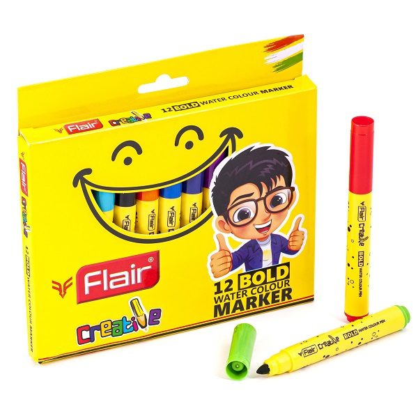 Фломастеры FLAIR CREATIVE (артикул FA 8015) с утолщённым корпусом: длина — 135 мм, ширина письма — 1–3,5 мм. Идеальны для первых фломастеров малышей. Утолщённый корпус легко держать в маленьких ручках. Яркая, заметная упаковка с европодвесом. Вентилируемый колпачок.