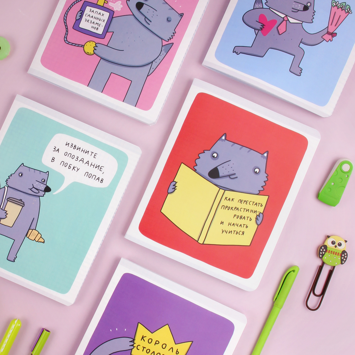 Компания «Эксмо» уже не первый раз презентует новинки с яркими и забавными персонажами, все вы знаете нашего смешного опоссума или опасных котанов. А сегодня мы представляем вам нового героя: знакомьтесь, Волк Енотов. Мемный волк и его самые жизненные ситуации. Уверены, тетради с его изображением будут радовать и смешить вас на протяжении всего использования.