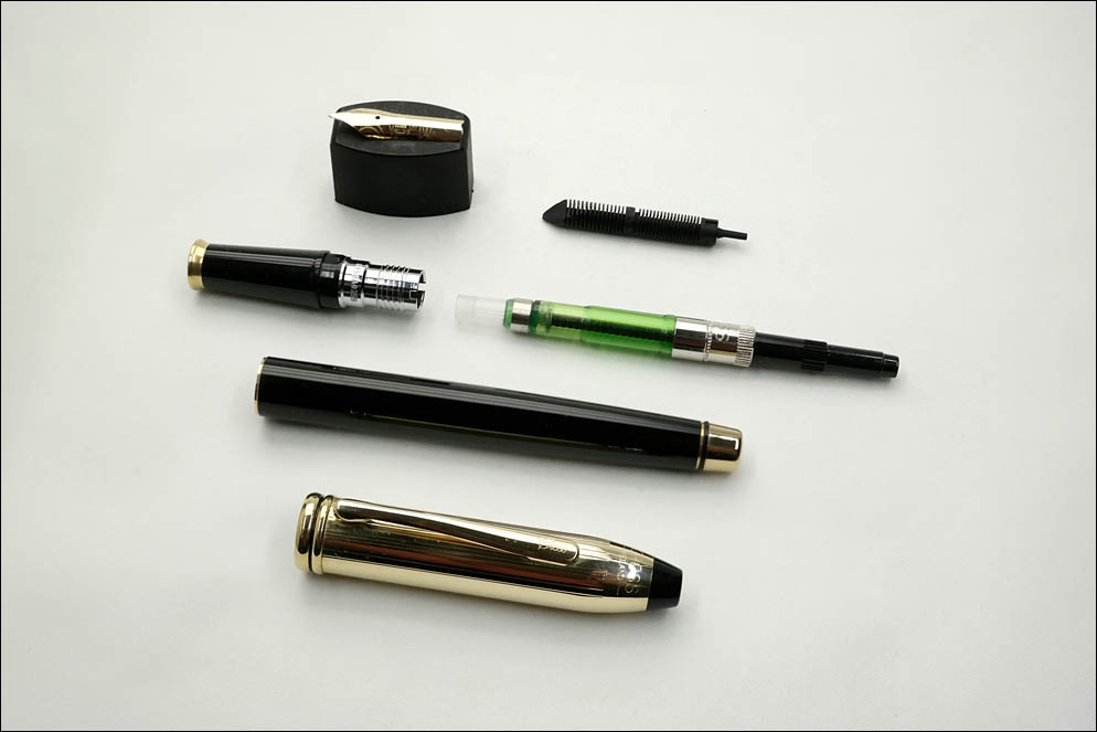 Данная модель не просто подобная ранее описанной, а именно точно такая же, только с другим пером, так что для полного описания можно перейти по ссылке на Cross Townsend Black Lacquered 10BL. Фотографию разобранной ручки я привожу только для погружения в тему.