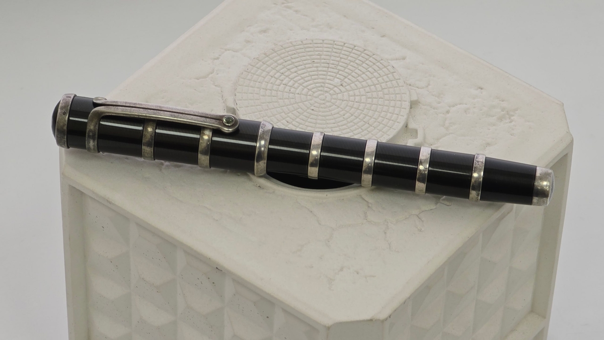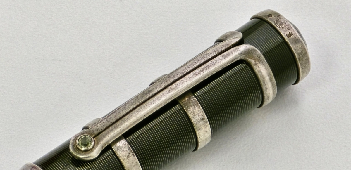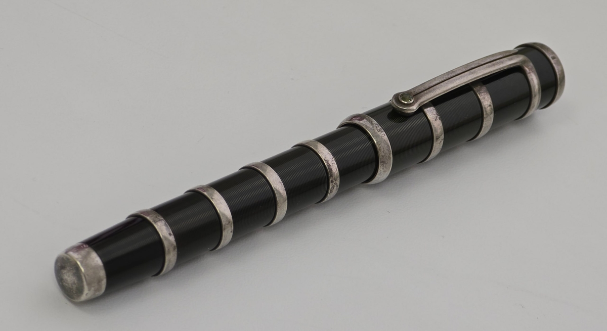 Повторюсь, основной материал — стерлинговое серебро: из него выполнены колпачок, корпус, включая тёмные лакированные вставки.