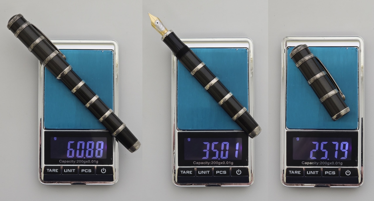 Инструмент не самый крупный, но увесистый — 60,88 г, из которых 25,79 г приходятся на колпачок.