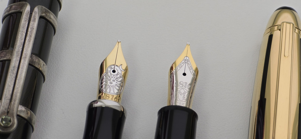 Ради интереса визуальное сравнение с пером на Montblanc Meisterstuck Solitaire Gold & Black LeGrand: