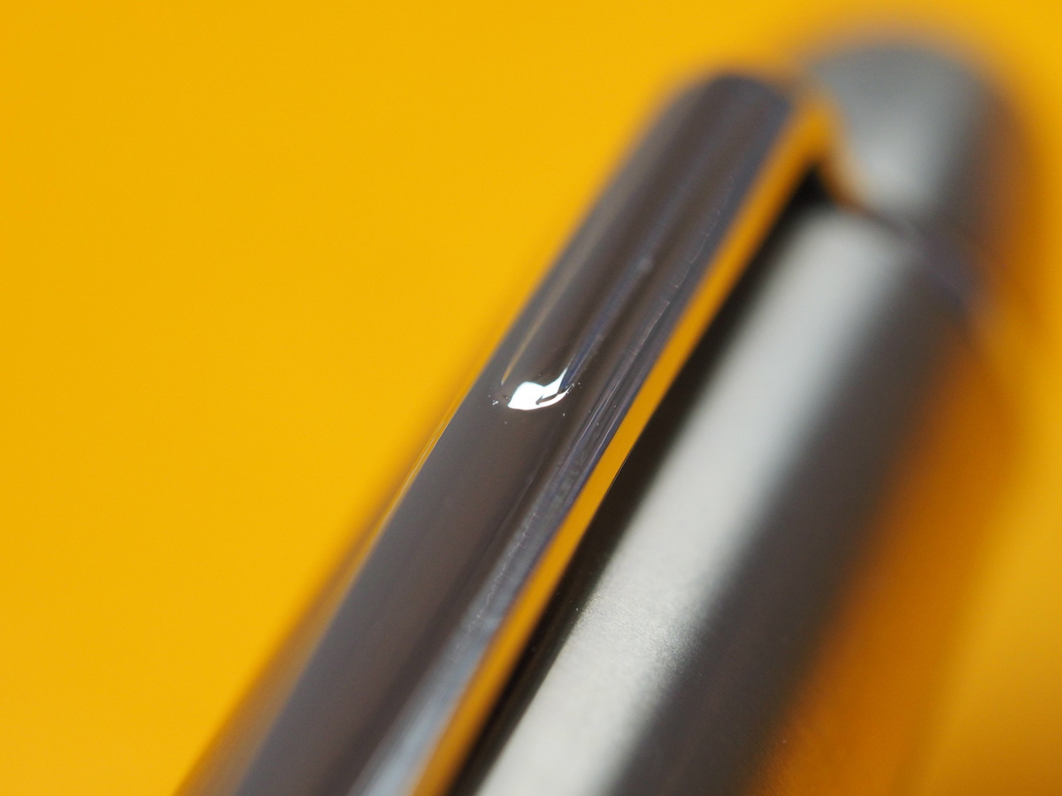 Как выразился коллега по увлечению, разглядывая фотографии: ручка пиджачно-деловая. Соглашусь и дополню: на мой взгляд, это не инструмент солидного директора, такой принадлежит скорее высококвалифицированному специалисту — архитектору, ведущему инженеру, программисту сеньор-уровня (не удивляйтесь, они много пишут ручками). Да, кольцо на колпачке действительно постепенно собирает отпечатки, становясь неприятно матовым, однако стереть их — пара касаний без усилий, меня не парит.