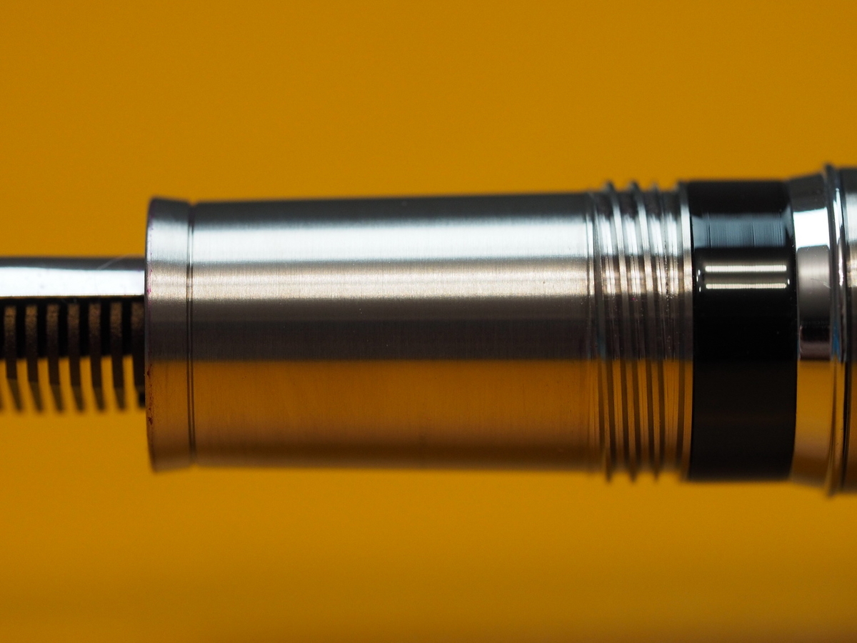 Я честно не разбирал свою ручку, но не менее честно искал в Сети результаты по поисковому запросу disassemble asvine j16. На что обратил внимание: у ручки пластиковый шток. Это не преступление, тем более такими вещами занимаются и более именитые коллеги по цеху, однако не рекомендую во время заправки откручивать ручку до хруста. Боюсь, для насечек на штоке это будет фатально. Ниже прикладываю скрины.