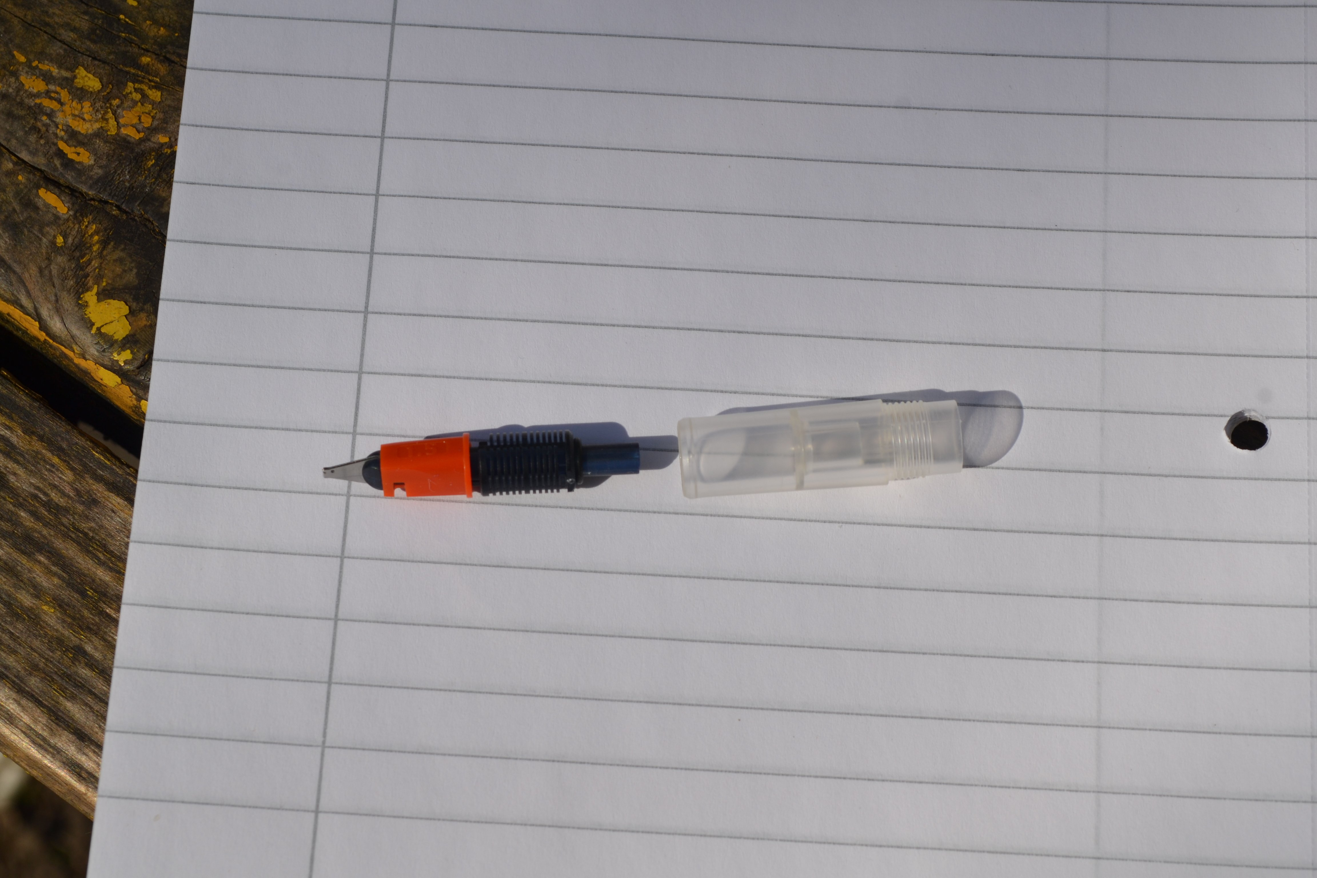 Заправляем, вкручиваем грип-секцию с новым пером, накручиваем колпачок, слегка встряхиваем ручку — вуаля!
