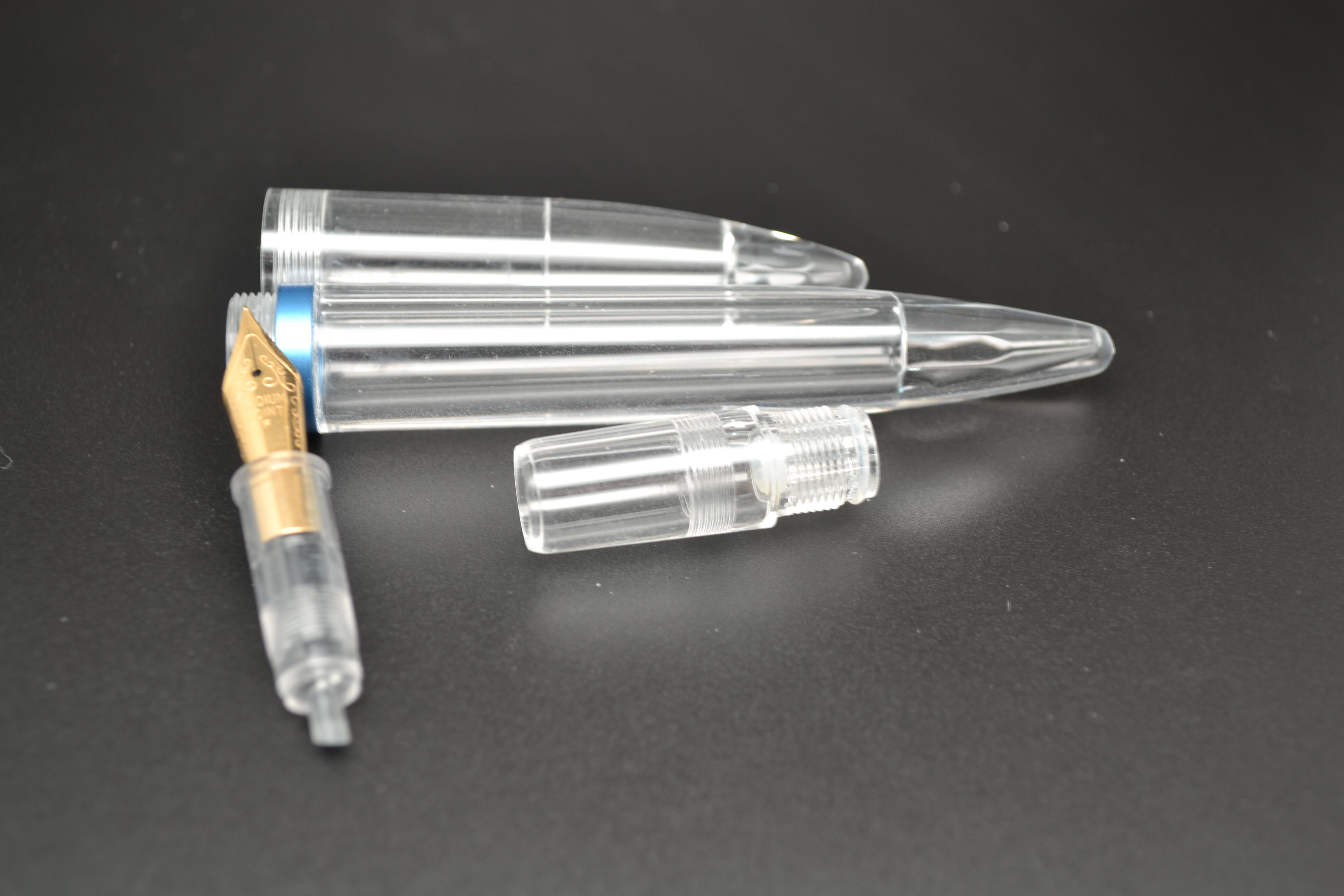 Итак, мы получили перьевой блок от Pilot и основу нашего монстра в виде корпуса-ёмкости для чернил, грипа и винтового колпачка от HYL.