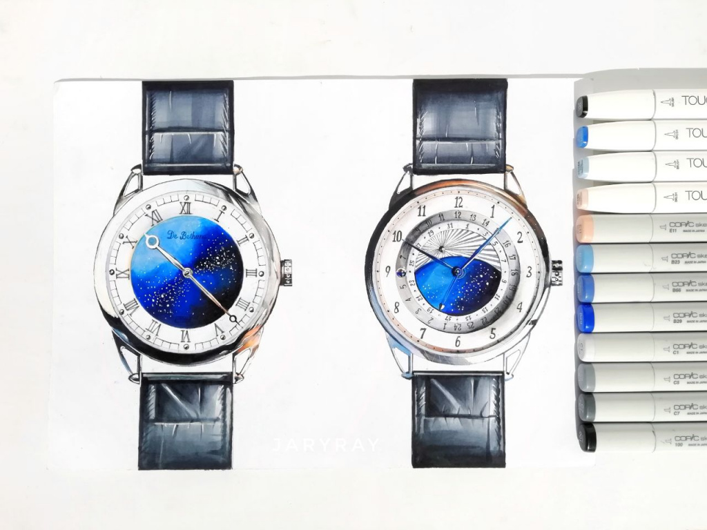 Это очень близкий параметр, и он тоже важен. При создании переходов цвета я предпочитаю такую технику: прислоняю наконечник одного маркера (более тёмного или насыщенного) к другому, потом растягиваю градиент, пока маркер не вернётся к своему цвету. Тут нужна некоторая сноровка, скорость и ровный наклон маркера к бумаге. Не со всеми материалами такое выходит, но Copic, ShinHan Art TOUCH и SKETCHMARKER позволяют провернуть такой приём, сохранив чистоту цвета на наконечниках.