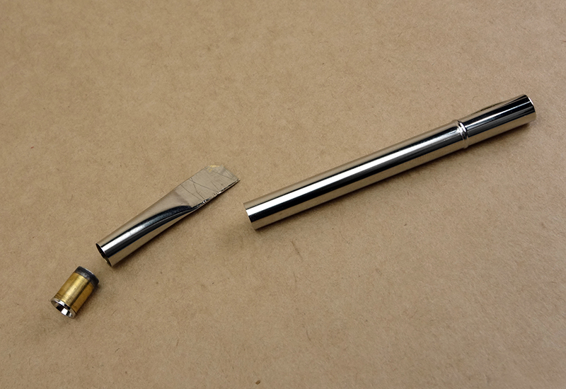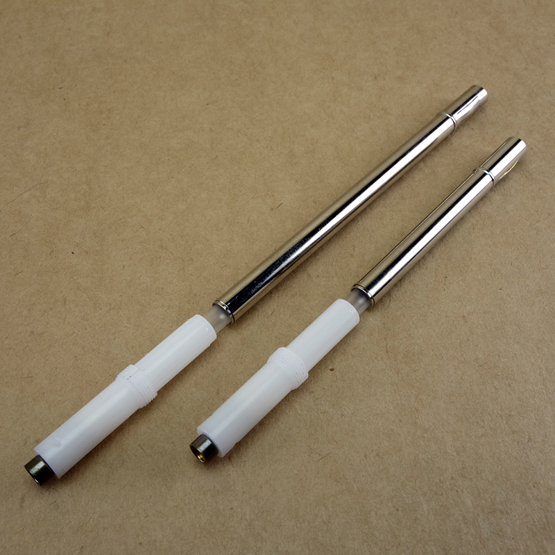 В последний заход я забил втулку в обрубок резервуара и собрал карандаш. На фото сравнение с нормальным резервуаром.