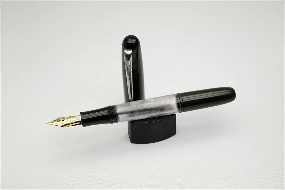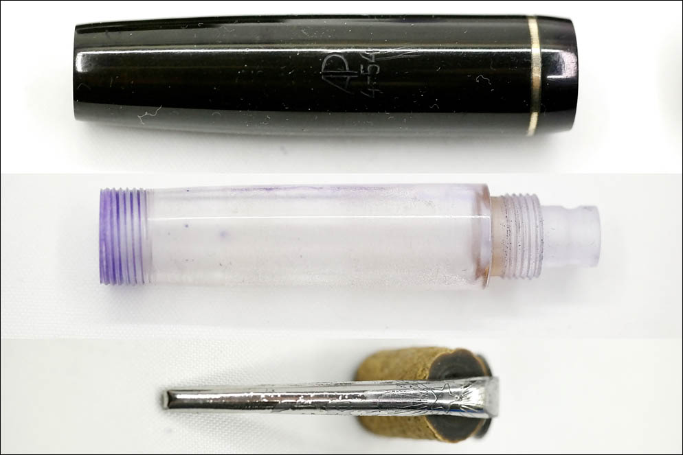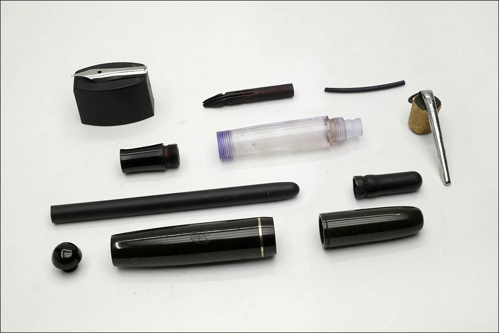 Колпачок, секция и колпачок заправочной системы выполнены из эбонита, а центральная часть — резервуар для чернил — из прозрачного плексигласа.
