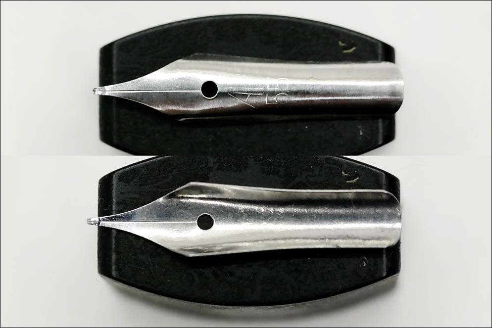 Кстати, примерно после 1960 года на харьковском заводе плавно перешли с перьев формата 5,5 на 5,0. Такие часто встречаются на поздних моделях.