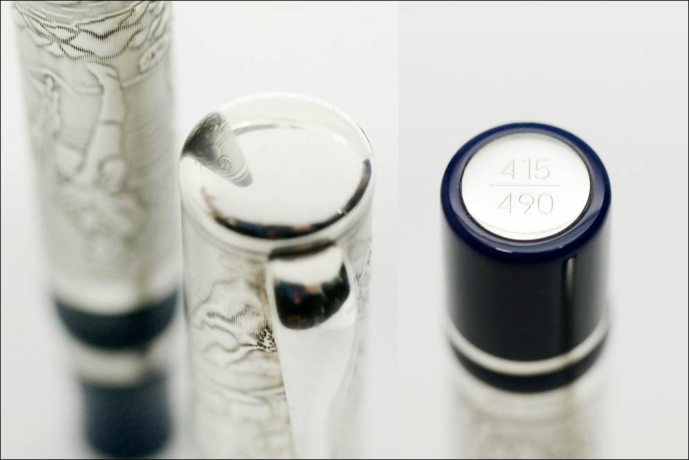 На ручке привода поршня расположен серебряный медальон с порядковым номером лимитированного издания. В данном случае это 415 из 490.