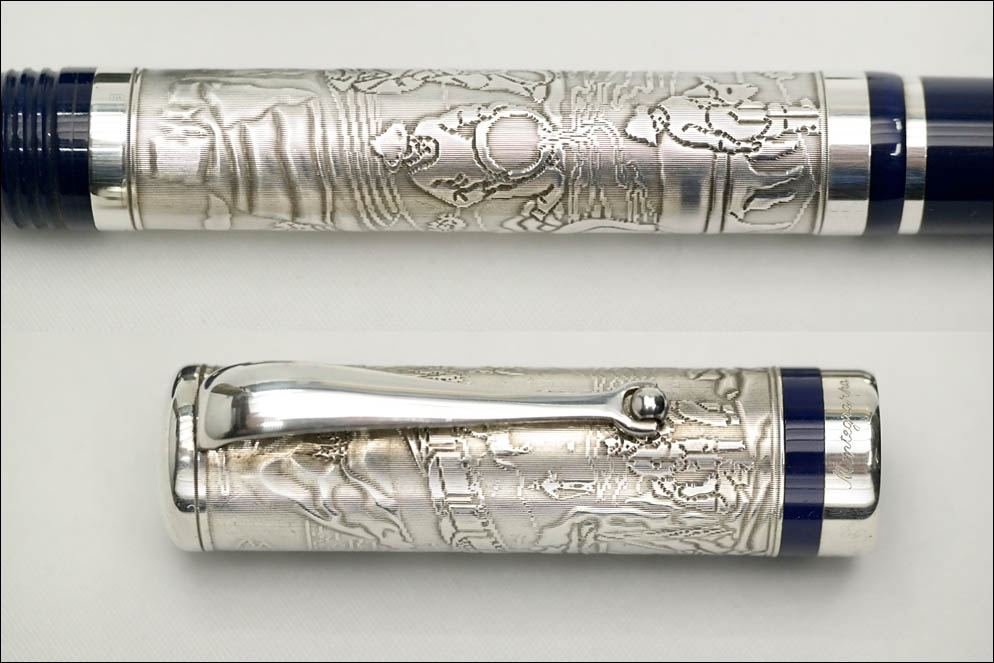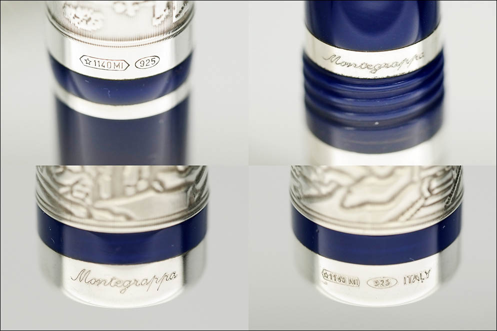 На корпусе и колпачке клейма ювелирного дома Montegrappa ★1140MI (MI — Milano, то есть инструмент был выпущен в период, когда компания находилась под руководством Richemont group 2000–2007) и проба серебра — 925 в овале. Также на кольцах колпачка и секции выгравированы имя бренда Montegrappa и страна производства — Italy.