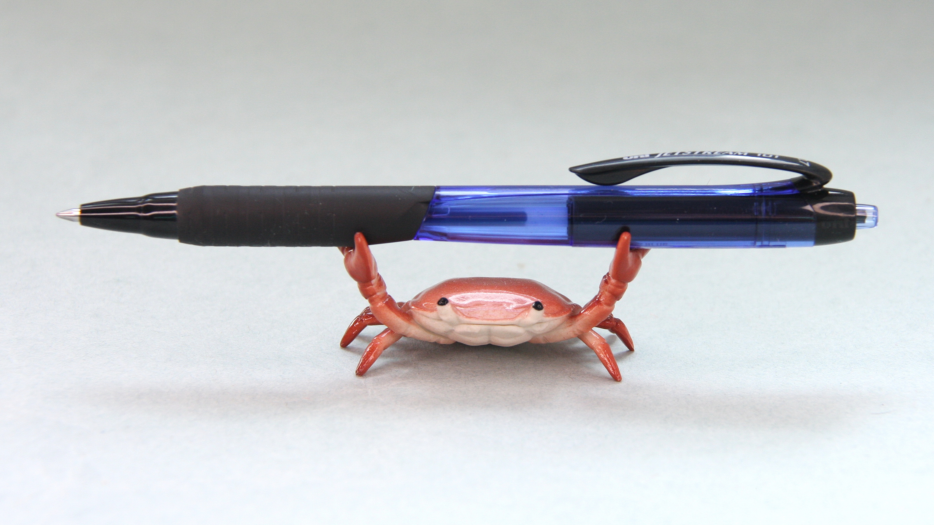 Довольно жёсткий металлический клип намертво держит ручку на офисном листе в перевёрнутом положении, но и на толстую обложку блокнота надевается легко.
