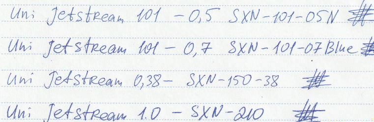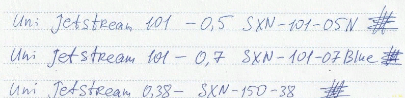 - и обозреваемой мною Jetstream SXN-150 (только с синим стержнем 0,38 мм)