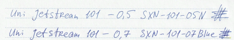 В общем, по совокупности параметров — яркость написанного, равномерность линии, гладкость скольжения по бумаге — Uni Jetstream впереди, а безусловный лидер — Jetstream SXN-210.