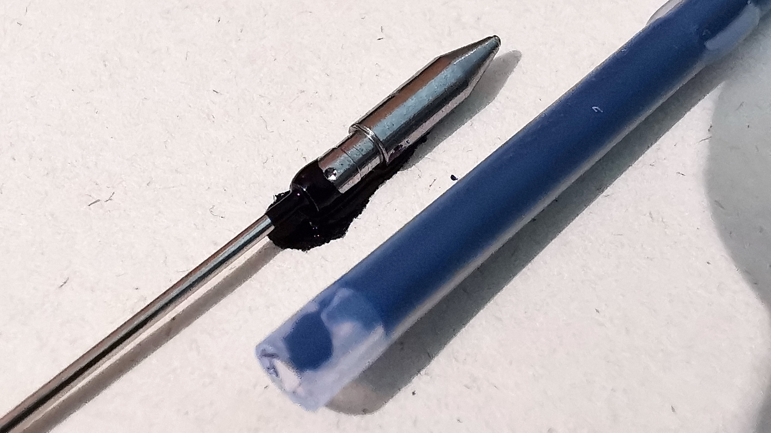 С лёгкостью вставил туда тонкую иглу и внутри ничего, кроме чернил, не обнаружил: