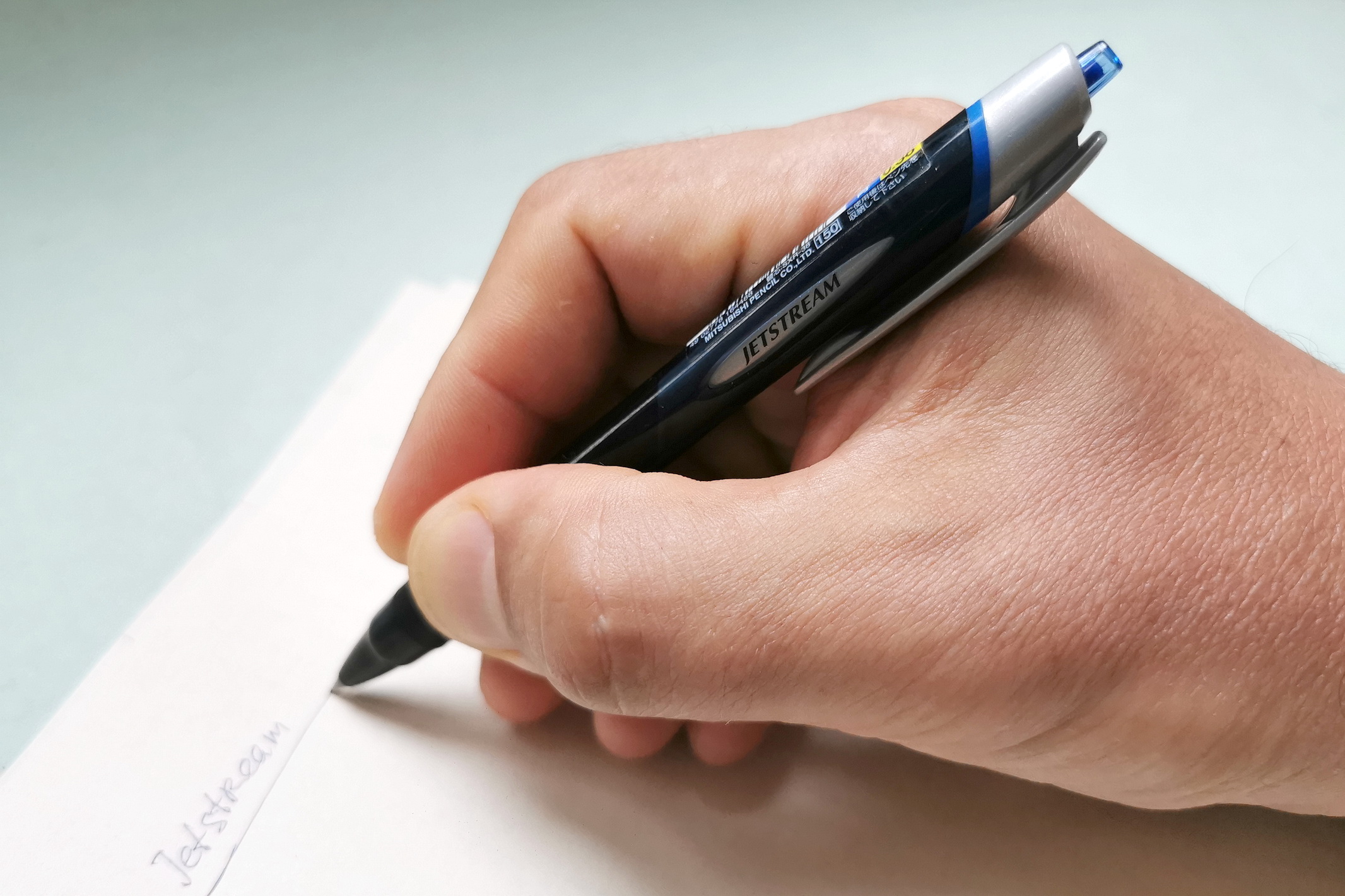- ручками Uni Jetstream якобы получается писать быстрее, ведь пишущий узел отлично скользит по бумаге;