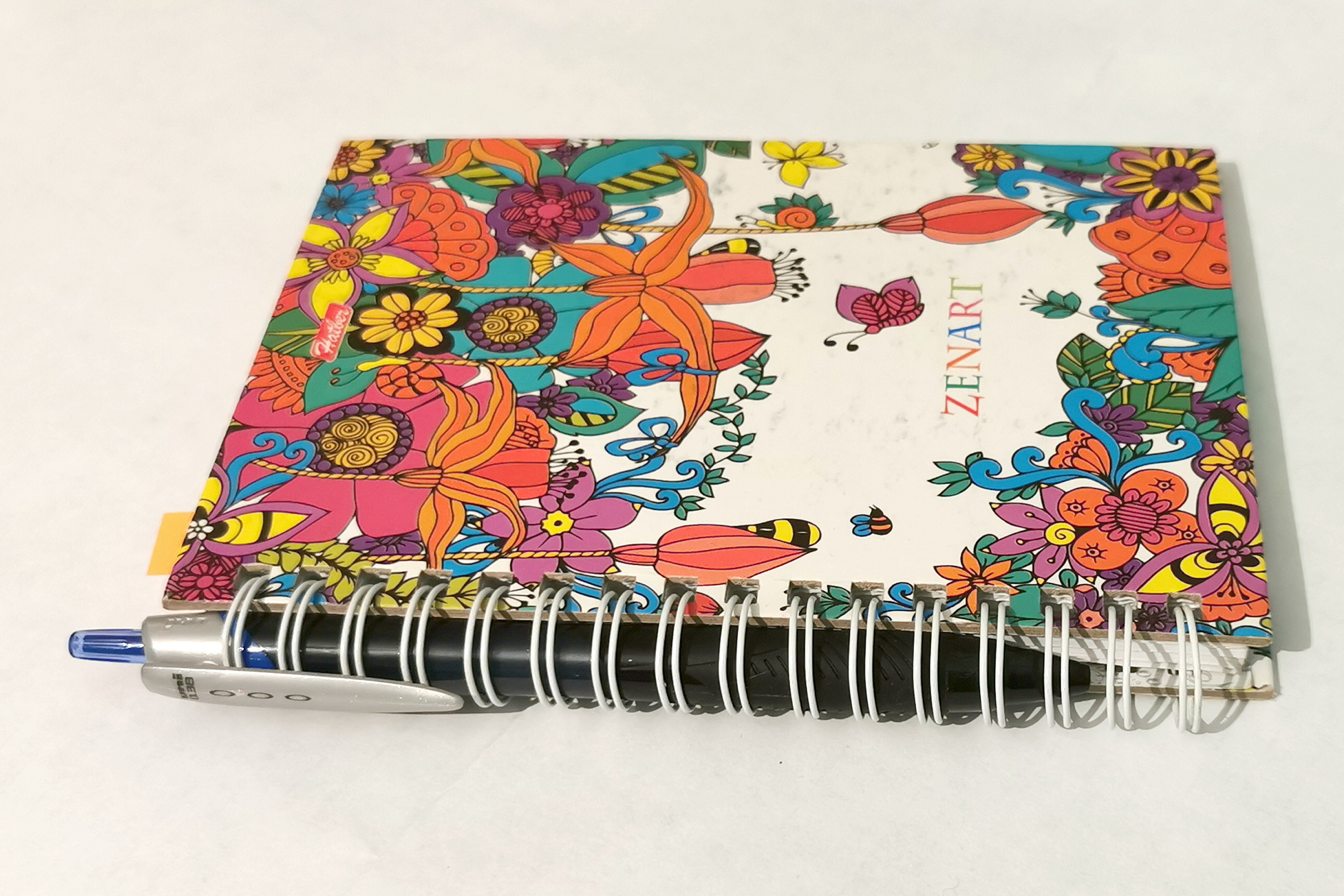 В пружину блокнота ручка вставляется впритык из-за чуть большего диаметра, плюс тугой клип не очень удобен для цепляния.