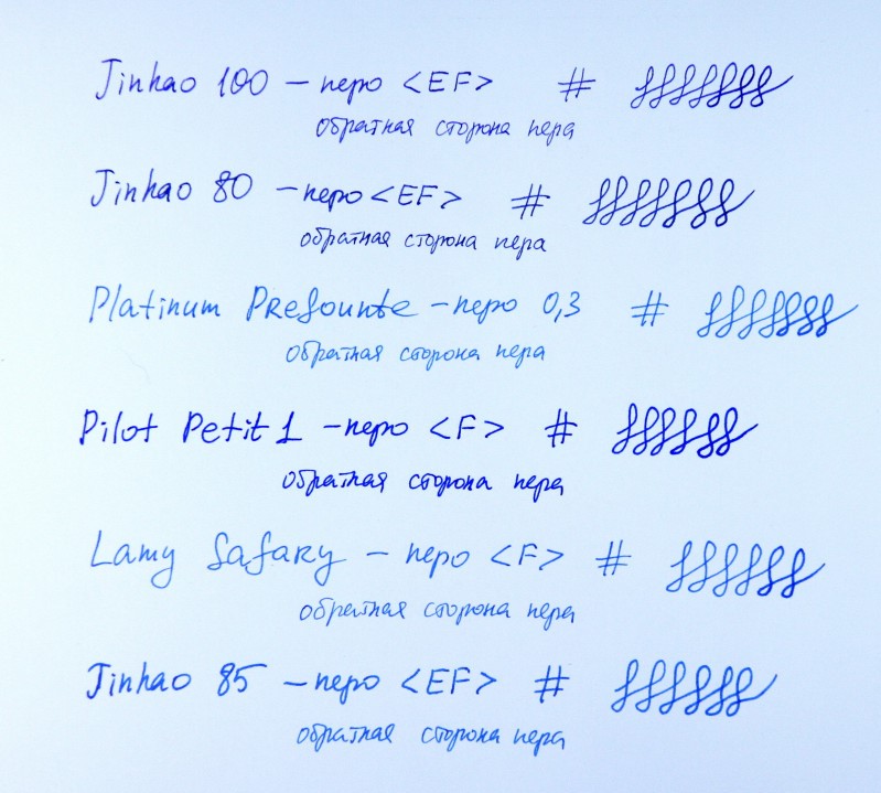 Сейчас Jinhao 80 доступна с перьями толщиной 0,3, EF (0,38) и F (0,5). У меня второй вариант.