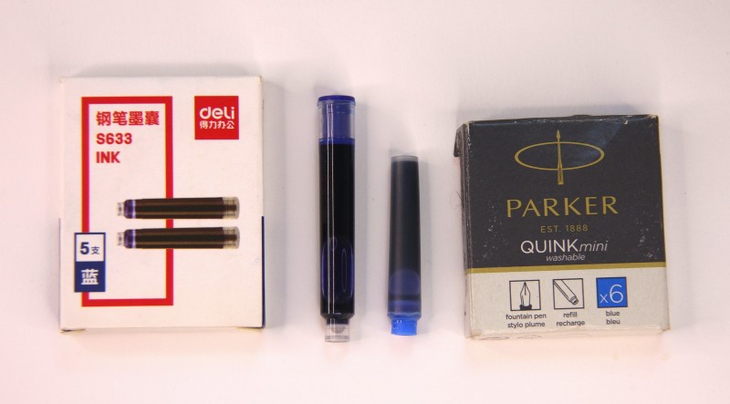 Китайские намного более вместительные, но картриджей Parker Quink mini можно загрузить два: один рабочий, другой запасной.