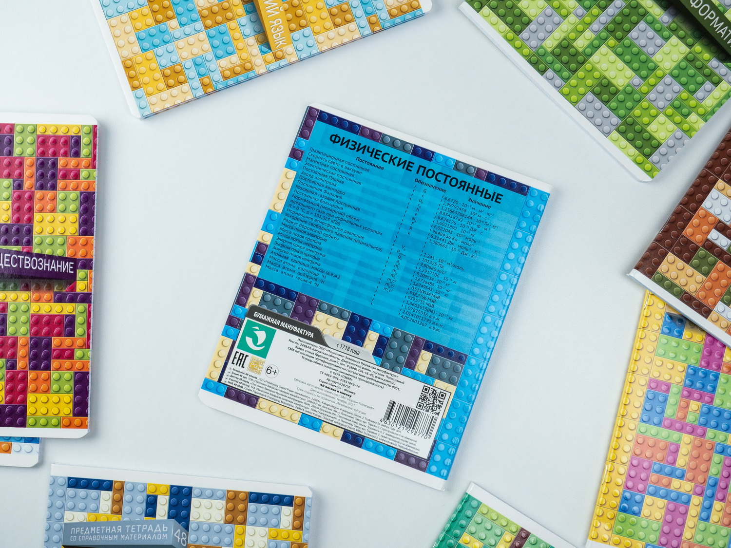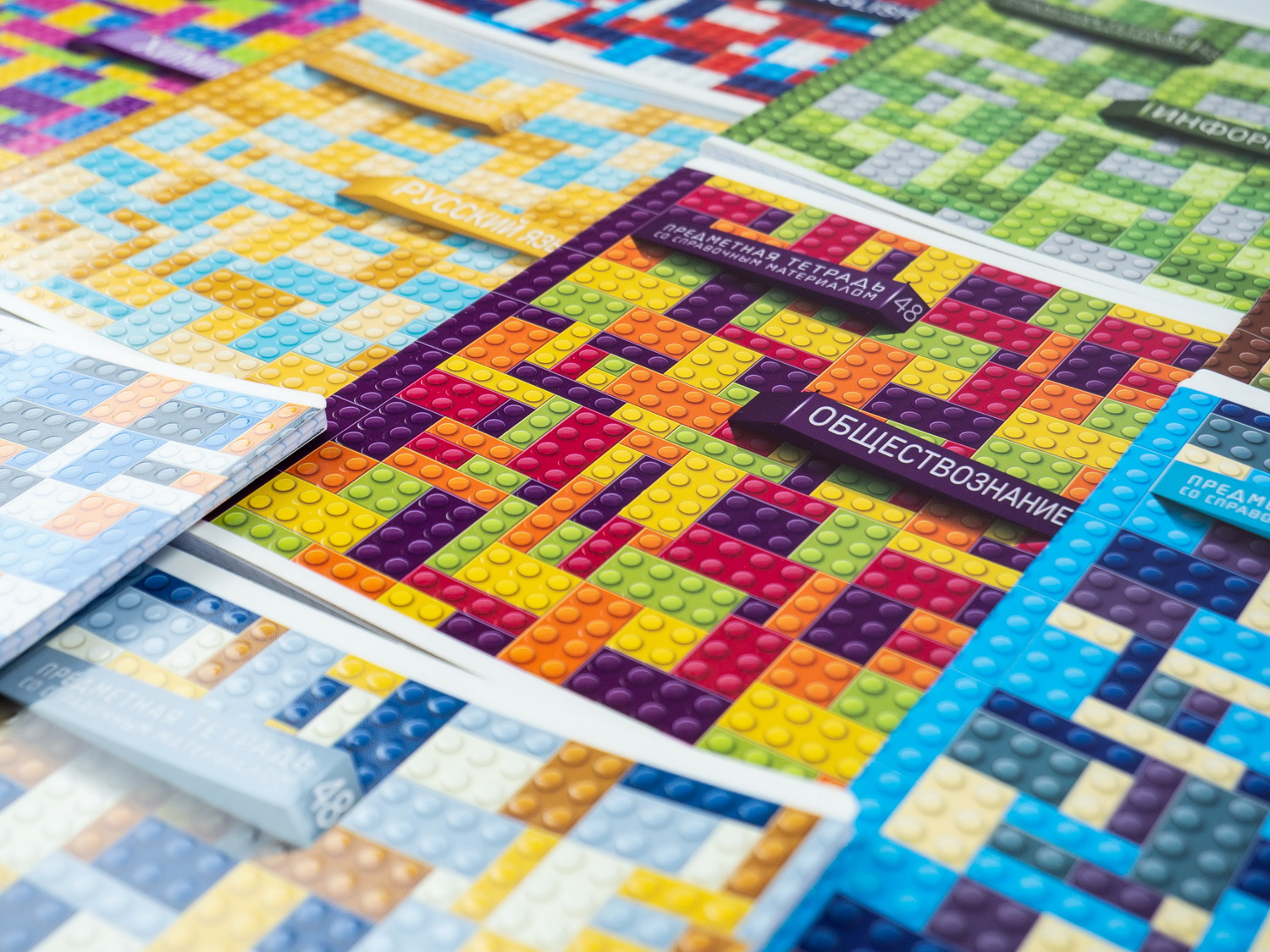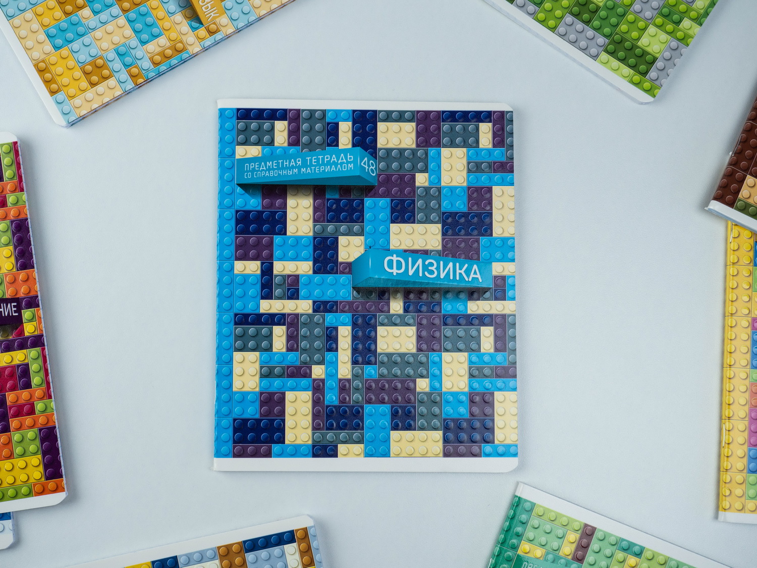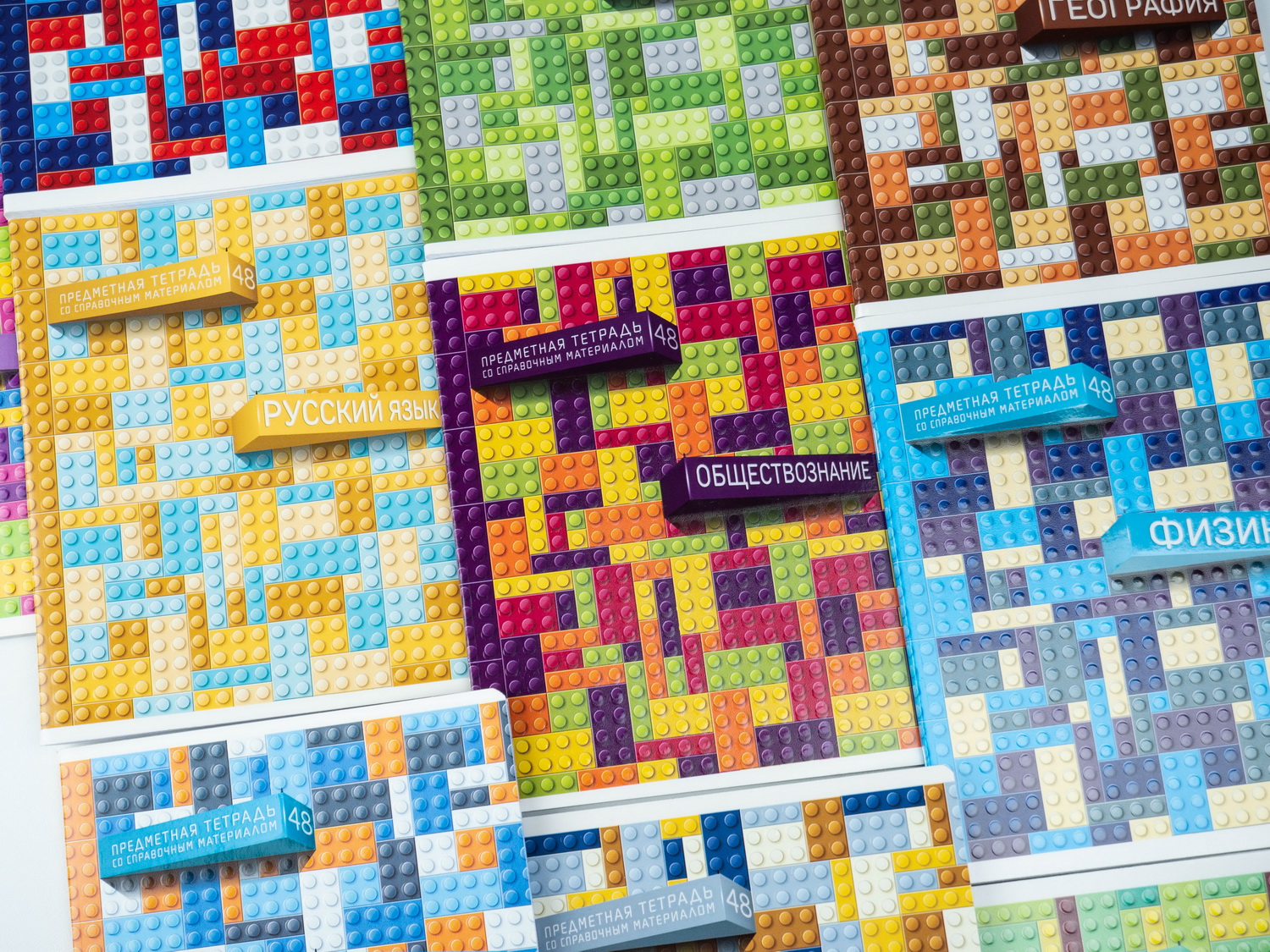 А вот название этой серии, на мой взгляд, неочевидно. Что скрывается за словом — загадка: пока обложку не увидишь — не поймёшь. На деле оказывается, что эта коллекция тетрадей посвящена детскому пластиковому конструктору. Пожалуй, оформление этой серии самое сдержанное и взвешенное. Сами посудите: использованы спокойные неяркие цвета, отсутствуют кричащие надписи и вызывающие иллюстрации. Думаю, эта коллекция получилась самой спокойной в подборке, но скучной от этого не стала, просто рассчитана на другую аудиторию, предпочитающую, скажем так, лишний раз не выделяться.