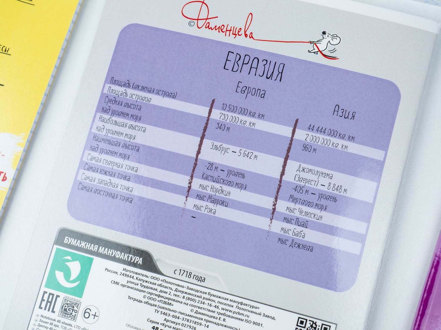 Обратная сторона тетрадей этой коллекции отпечатана аналогичным образом: справочная информация, технические данные и коды. Ну да я об этом предупреждал выше.