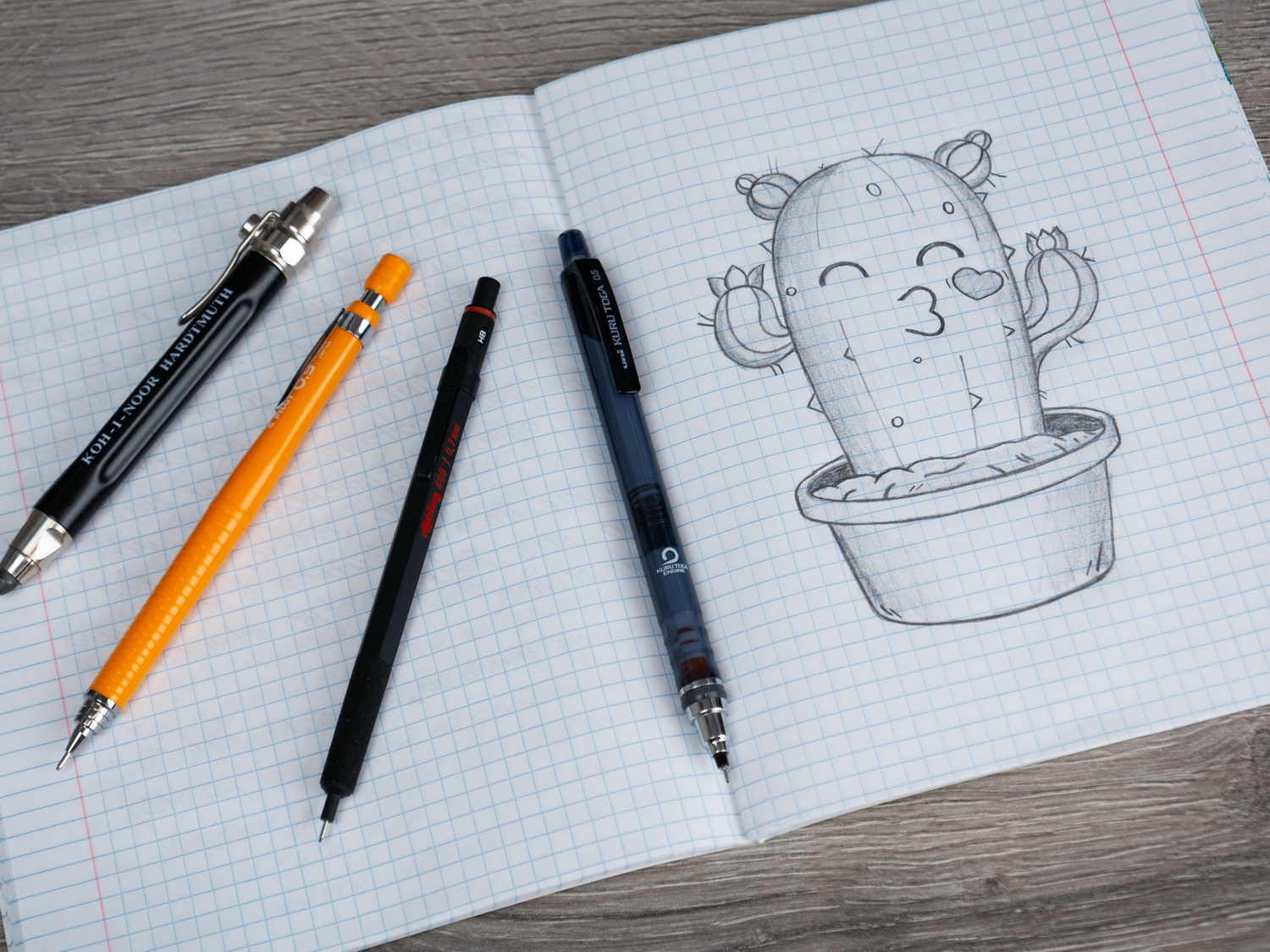 Хотя в первую очередь тетради предназначены для письма, судя по карандашному тесту, с простейшими зарисовками они тоже хорошо справляются. После моих ластиковых экзекуций бумага не протёрлась до дыр и не истончилась. Рисунок на обратной стороне листа не отпечатался. Значит, графики и небольшие чертежи, по той же геометрии, чертить можно без опасений, что тетради будет нанесена травма.