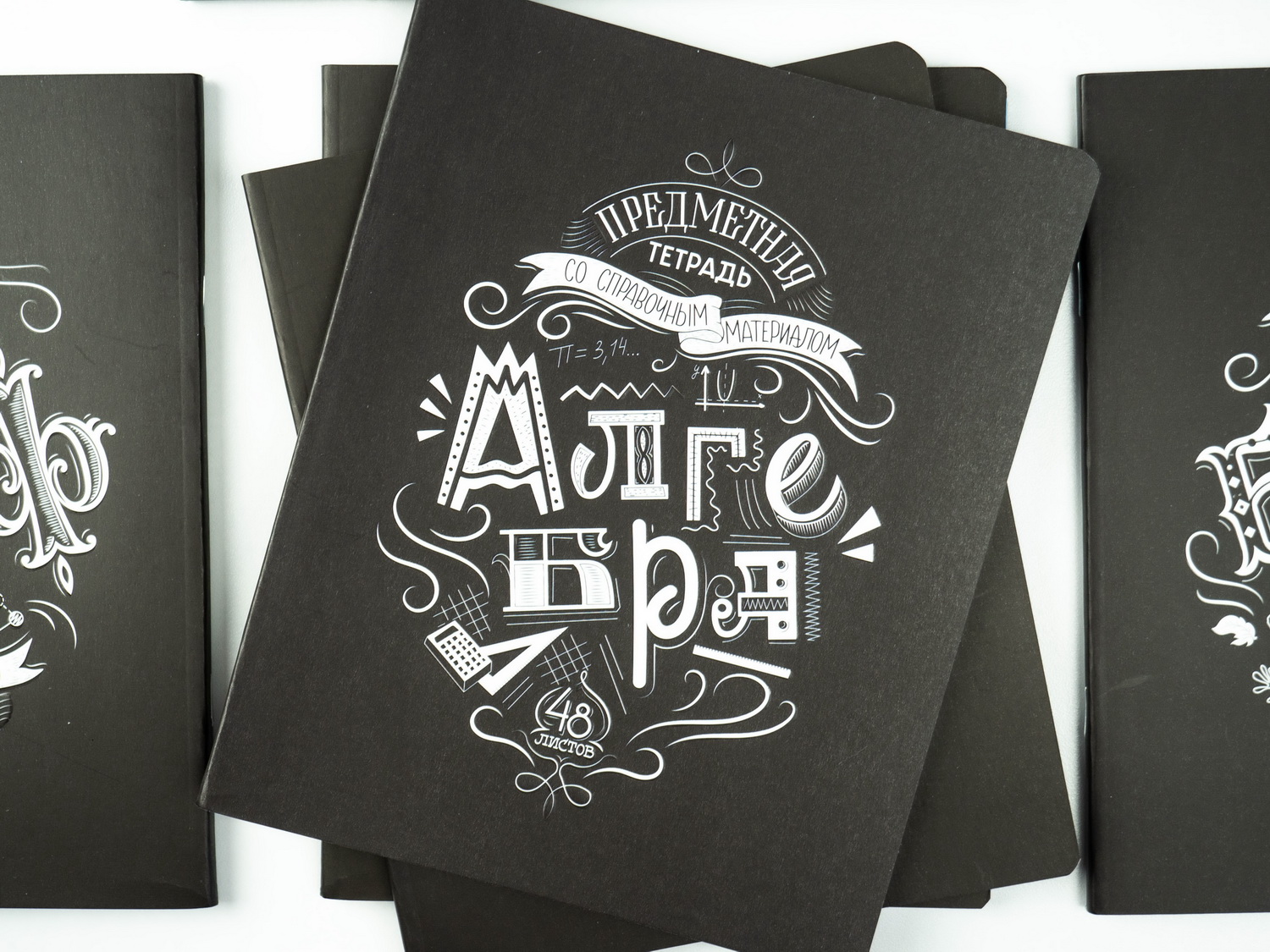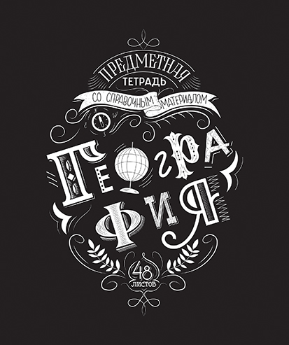 Серия этих тетрадей называется «Леттеринг», а я бы ещё сузил название и добавил от себя слово «Меловой». Именно его мне больше всего напомнила стилизация обложек этих тетрадей: чёрную меловую доску, надписи и рисунки, сделанные на ней белым мелом.