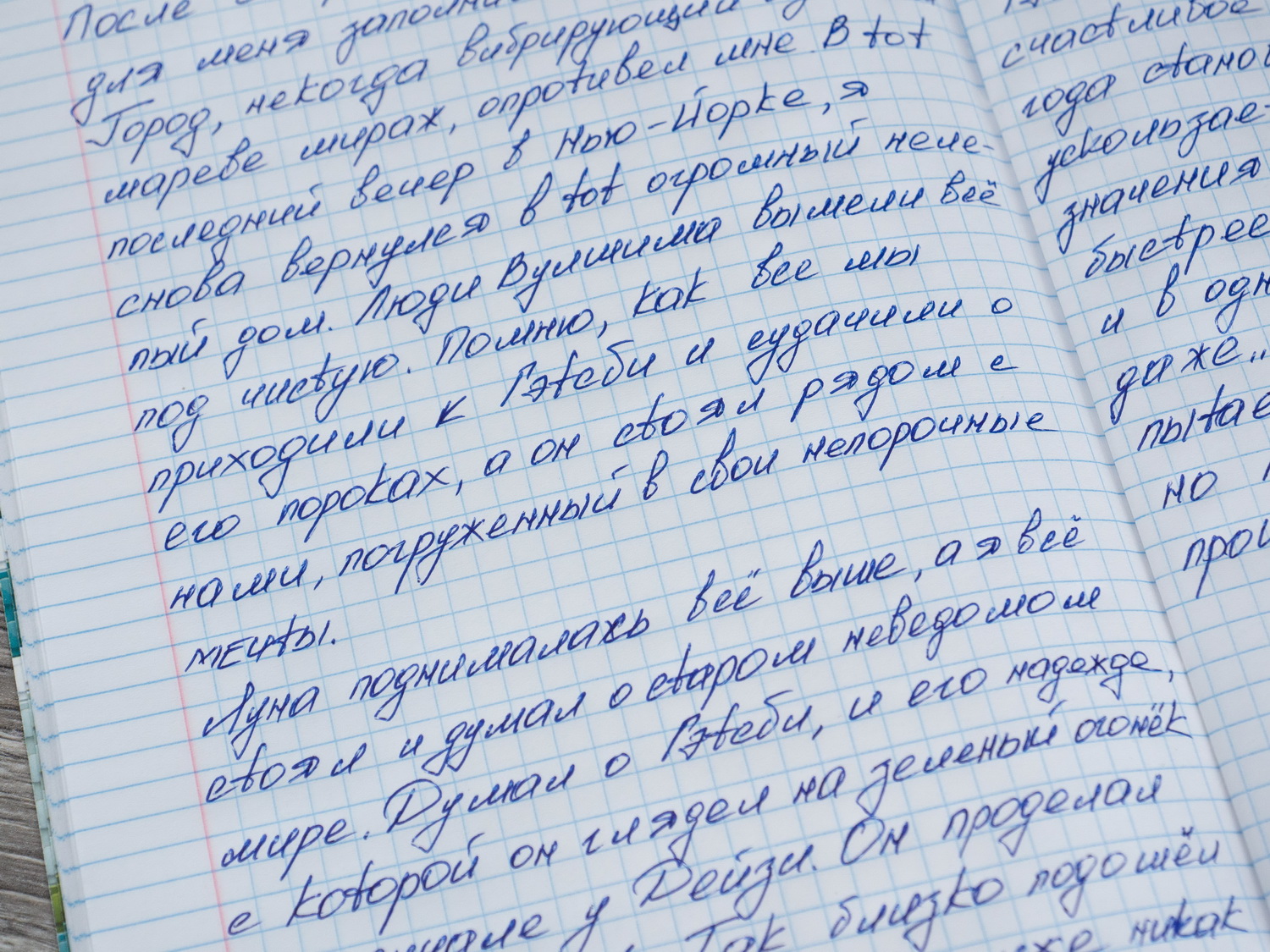И всё же голубая линовка — моя любимая, особенно если она неяркая и чёткая. В тетрадях ПЗБМ как раз такая: печать высокого качества, линии не расплываются. В зависимости от предмета линовка в клетку либо в линейку. Поля — вертикальная красная линия.