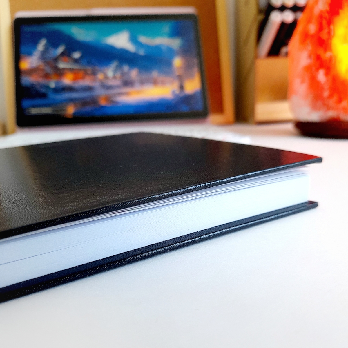 Блокнот довольно толстый, увесистый: с собой носить такой не слишком удобно, а вот для домашних зарисовок — самое то.