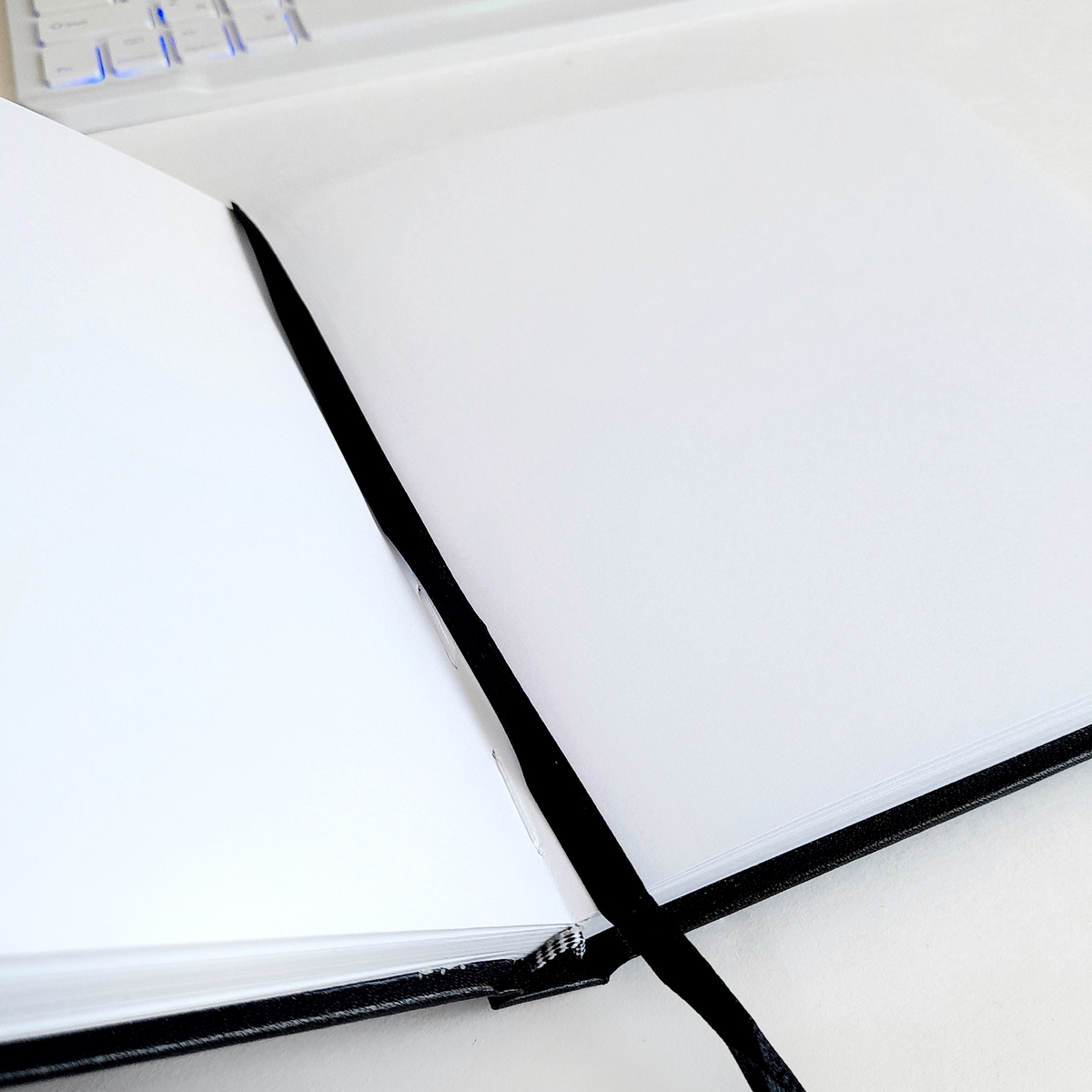 Внутри есть чёрная атласная лента-закладка, что удобно. Бумага холодного белого оттенка.