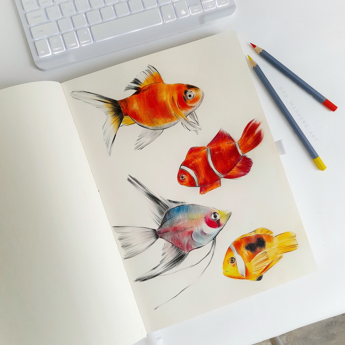 - в этом скетчбуке можно работать маркерами на спиртовой и водной основе, карандашами, чернилами, брашпенами;