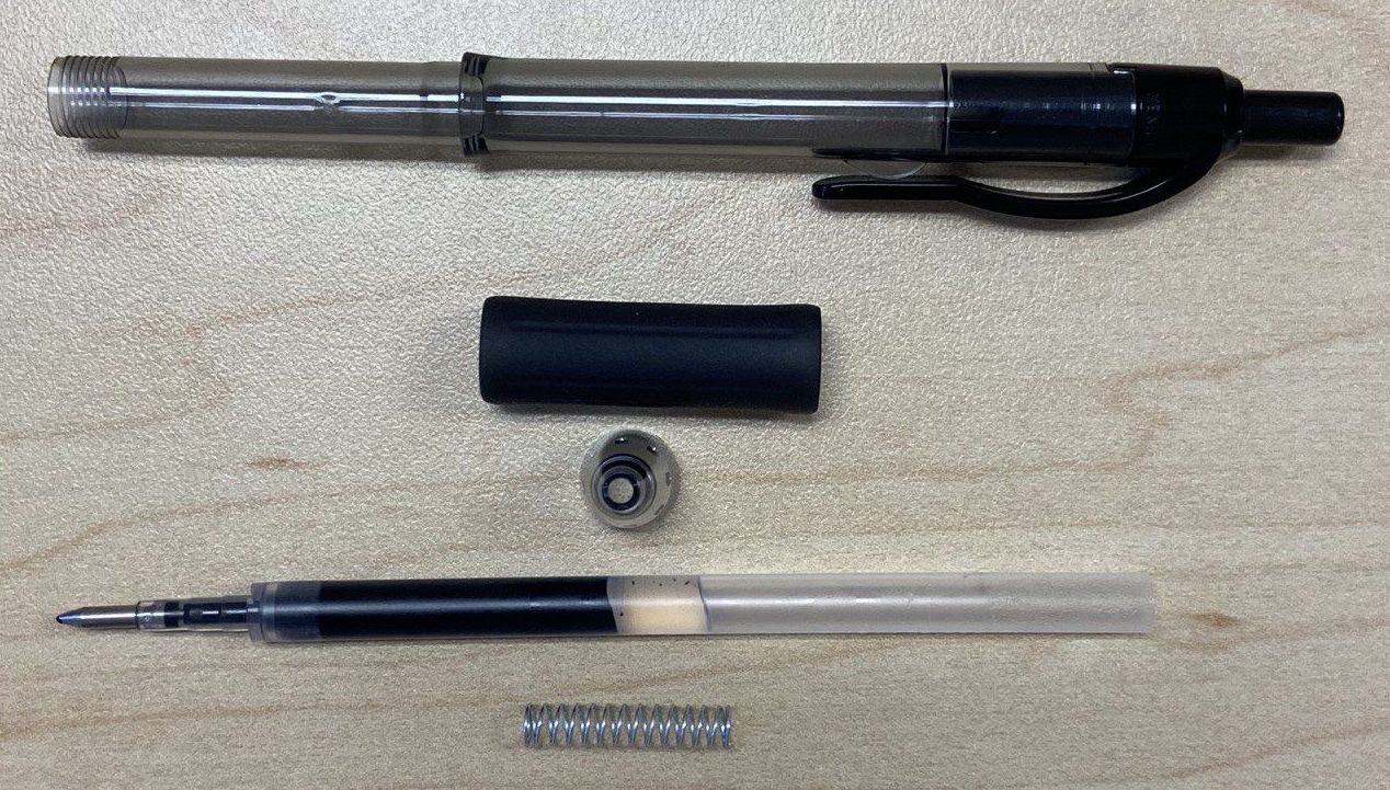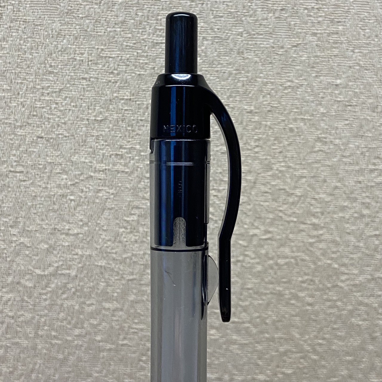 При нажатии на кнопку механизма подачи стержня (плавно-упругое, безо всяких резкостей) слышен глухой и мягкий звук: раздражать кого-либо такой не должен. Если потрясти ручкой, когда кнопка нажата, последняя будет немного болтаться.