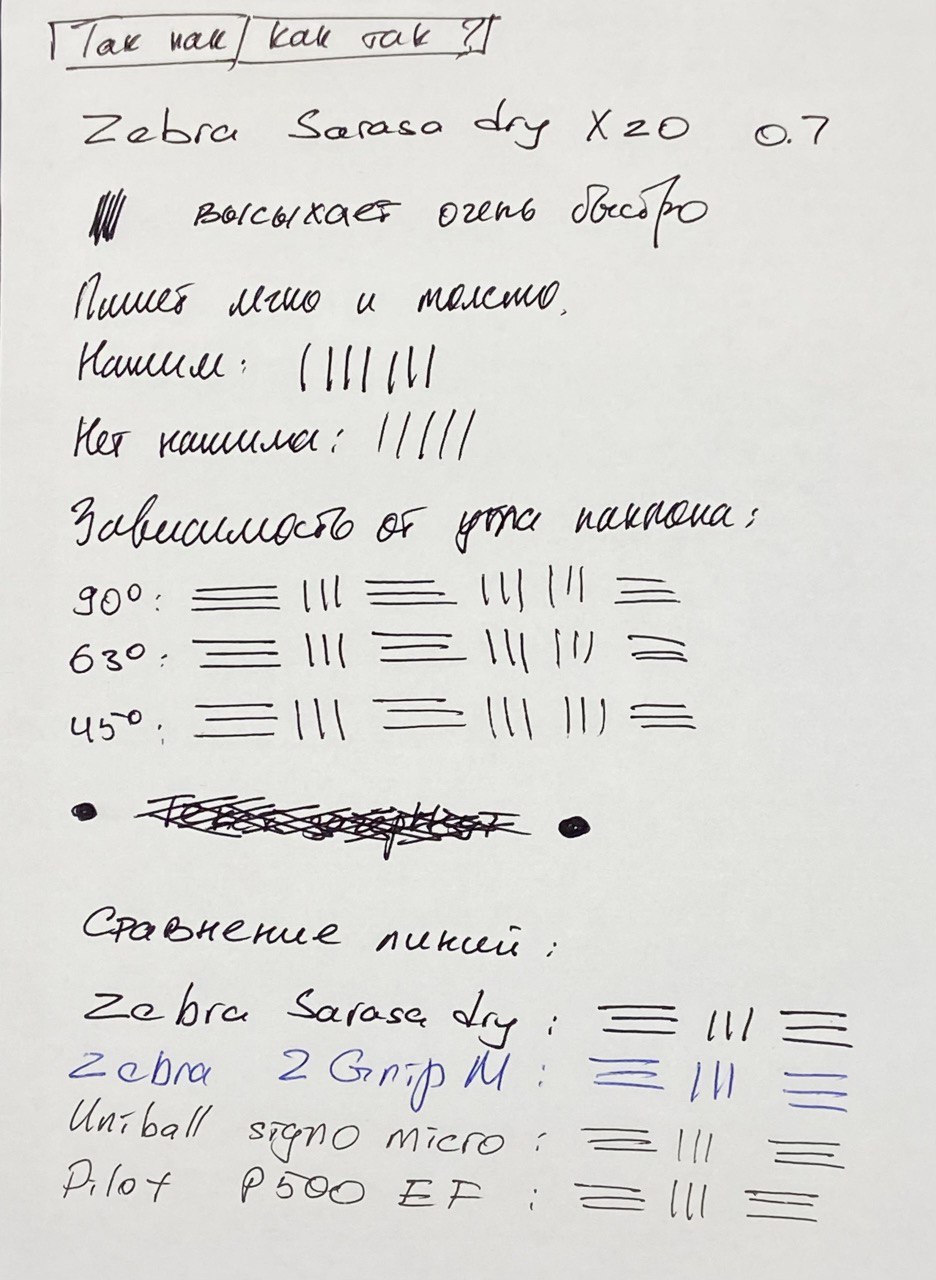 Zebra Sarasa dry X20 — хорошая, надёжная ручка, которой хочется писать.