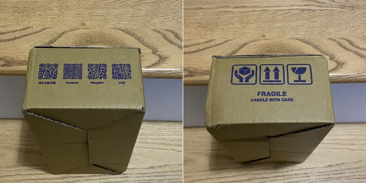 На торцах коробки QR-коды, ведущие на социальные сети Cypress, и предупреждение о хрупком содержимом.