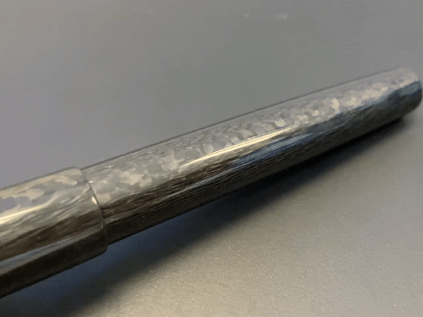 Корпус Cypress Carbon Black сделан из углепластика (карбона). Это полимерный композитный материал из переплетённых нитей углеродного волокна, расположенных в матрице из полимерных смол. Он обладает высокими жёсткостью и прочностью, а также малой массой на единицу объёма. Для перьевых ручек самое то: не разобьётся и не сломается при падении, не добавит лишнего веса при письме.