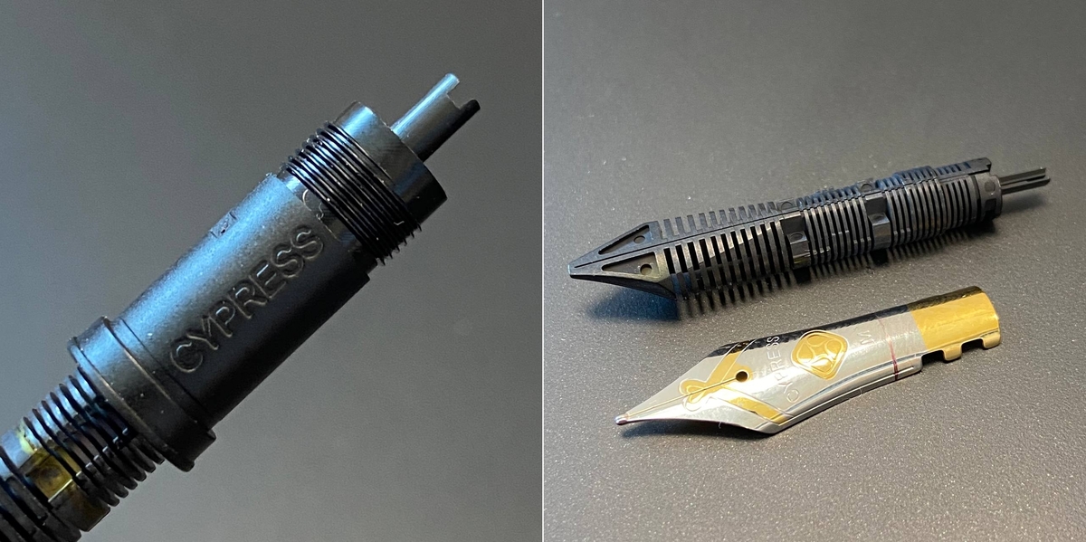 Разбирается Cypress Carbon Black просто: фидер и перо легко вытаскиваются, так же свободно выкручивается перьевой блок.