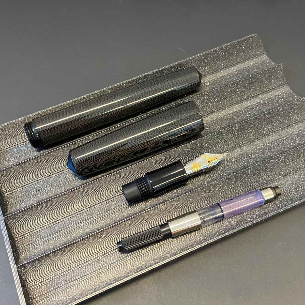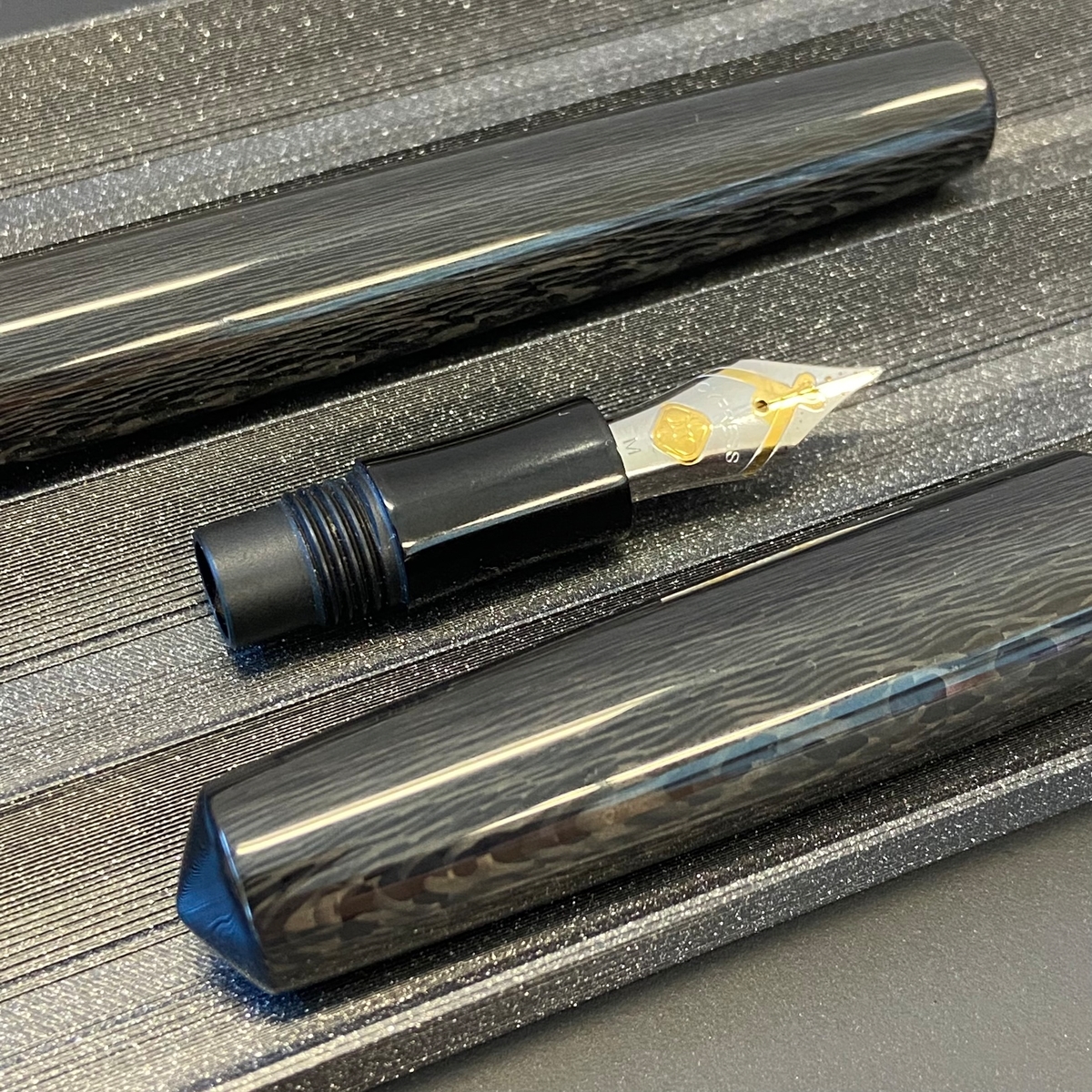 Если помните, была у нас однажды HEX Design DNA Evolved, корпус которой распечатан на 3D-принтере; была эбонитовая Desiderata BAMF с легендарным пером для каллиграфии и рисования Zebra G; был реверанс в сторону плакатных перьев от Pilot — Parallel Pen. Пришло время для углепластика.