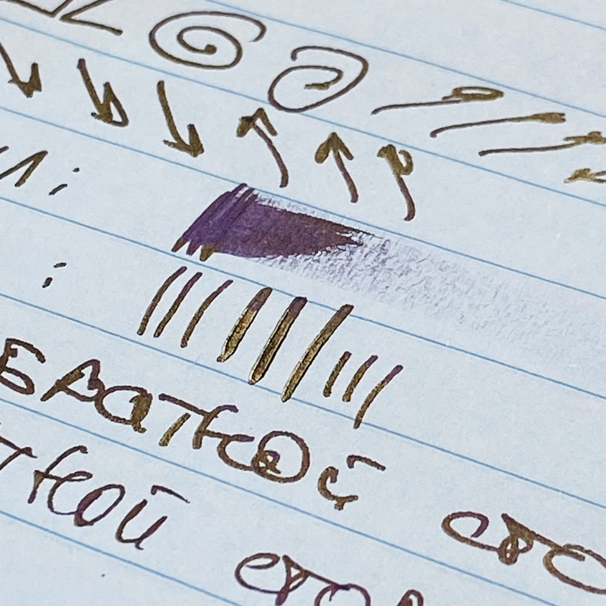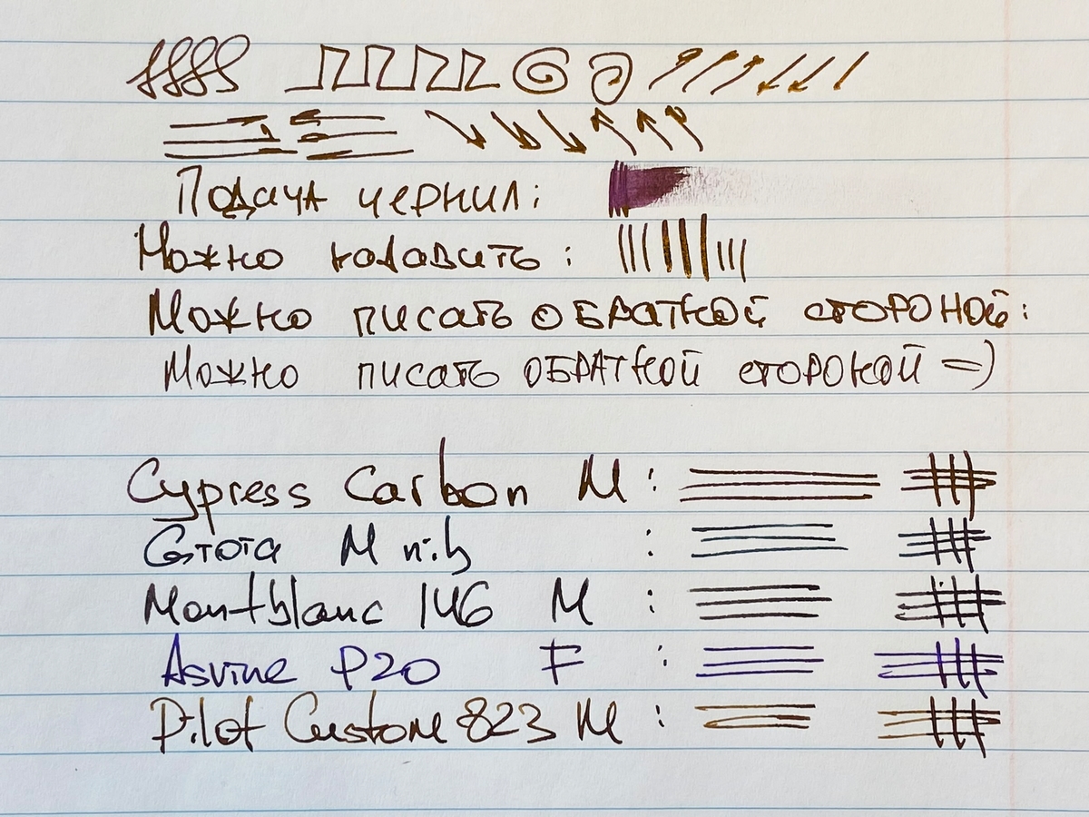 Неизведанные чернила — всегда риск: если что-то пойдёт не так, придётся промывать ручку, а я ленивый. :) Но благо случился отличный симбиоз: умеренно-обильная подача и «правильная» толщина линии сделали своё дело.