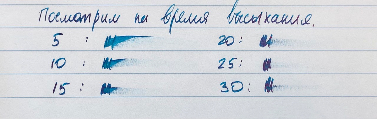 Чернила ведут себя ожидаемо одинаково на разных перьях, пишут немного суховато, высыхают быстро.
