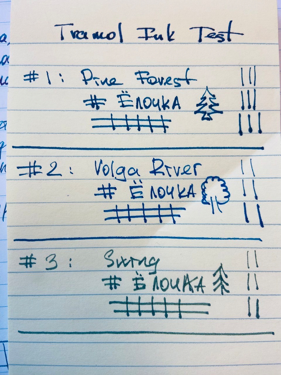Я давно обратил внимание на чернила Tramol, так как они постоянно попадались мне на глаза: сначала в предложениях на AliExpress, затем в паре обзоров ручек на YouTube, далее на Reddit. Подумав, что это знак, решил пополнить ими свою коллекцию. Как минимум цветом с интригующим названием Volga River (в переводе — «Река Волга»). Кстати, изначально он именовался Volga Lake («Озеро Волга»), но благо кто-то подсказал китайцам, что тут не так. :)