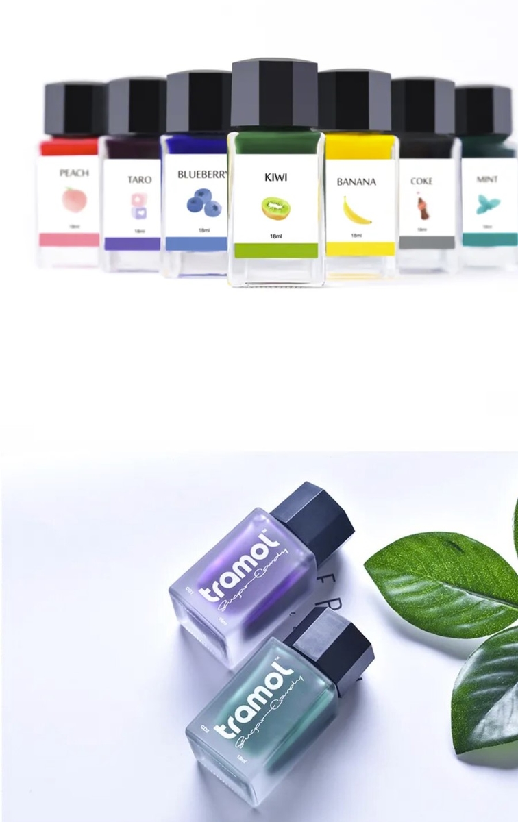 Главное, что бросается в глаза в случае с этим продуктом, — большой выбор: тут вам и множество линеек, и изобилие оттенков, и у каждого своё интересное название. А ещё — у чернил Tramol очень стильные упаковка и флаконы, только взгляните!