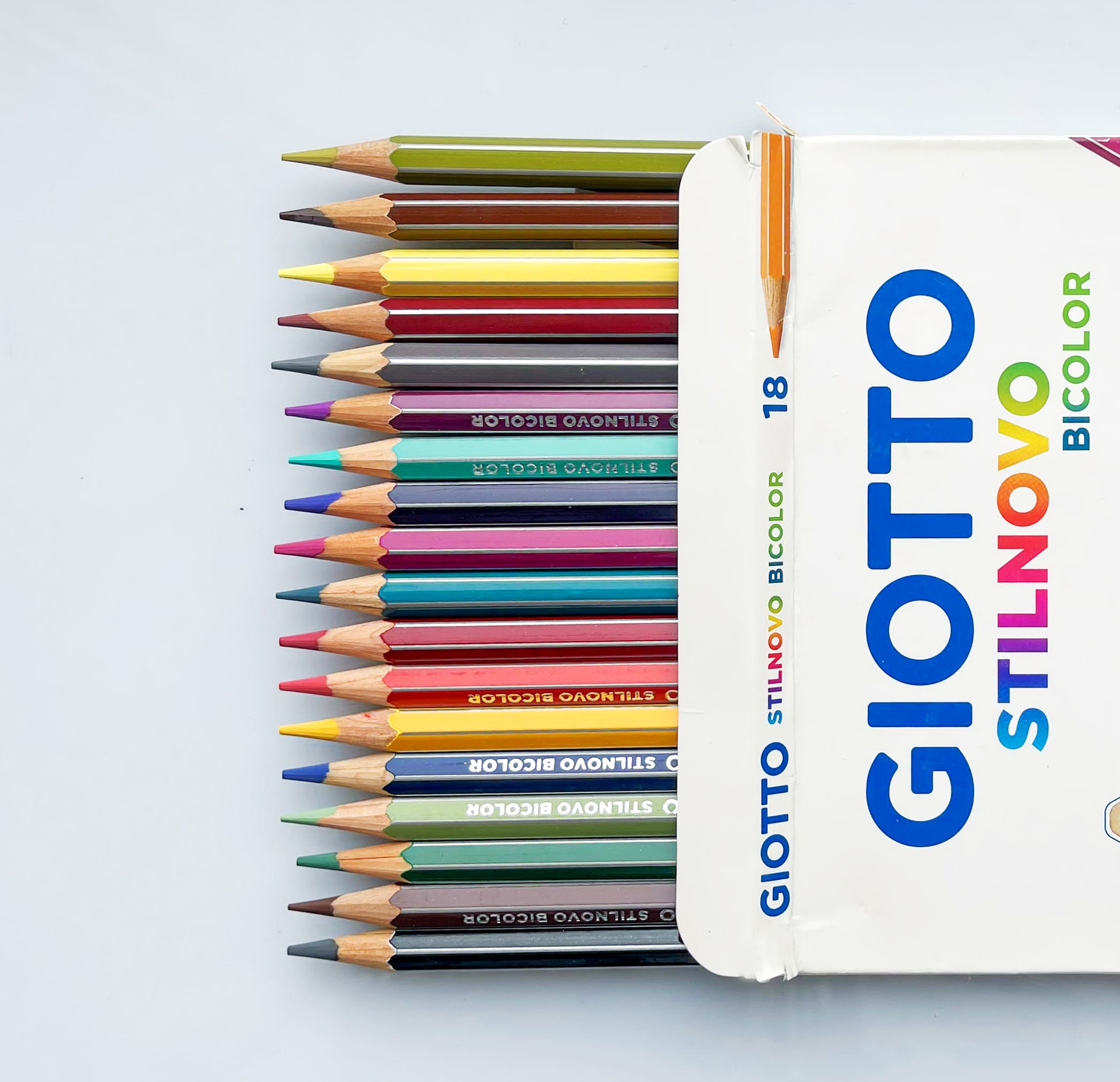 Флагман линейки GIOTTO — карандаши Stilnovo. Есть три варианта: классические Stilnovo, двусторонние Bicolor и набор телесных оттенков Skin tones.