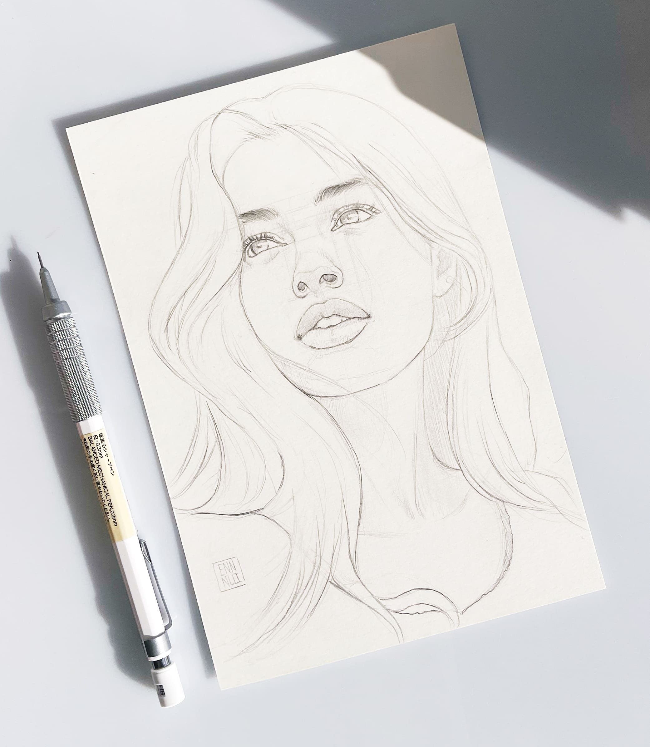 Сначала делаю набросок в простом карандаше. Так как будет использоваться вода, лишний графит нужно убрать, чтобы он не дал грязь при контакте с мокрой кистью.
